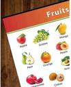 Kids Chart of Fruits contains Apple, Orange, Grapes, Banana, Mango, Guava, Pineapple, Pomegranate, Papaya, Watermelon, Jackfruit, Plums, Chickoo, Pear, Cashewnut, Mangosteen, Strawberry, Lemon, Custardapple, Dates, Cherry, Jamun, Starfruit, Litchi. Vegetables consist of Cauliflower, Tomato, Onion, Brinjal, Potato, Cabbage, Ladiesfinger, Capsicum, Carrot, Peas, Bittergourd, Drumstick, Pumpkin, Ginger, Chillies, Garlic, Ridge Gourd, Beetroot, Snake Gourd, Beans, Radish, Bottle Gourd, Turnip, Mushroom. Paper Print (70 inch X 48 inch)