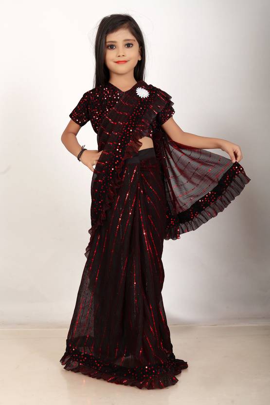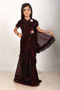 Kids Clothing By VNB Embellished Bollywood Supernet Saree (Maroon)