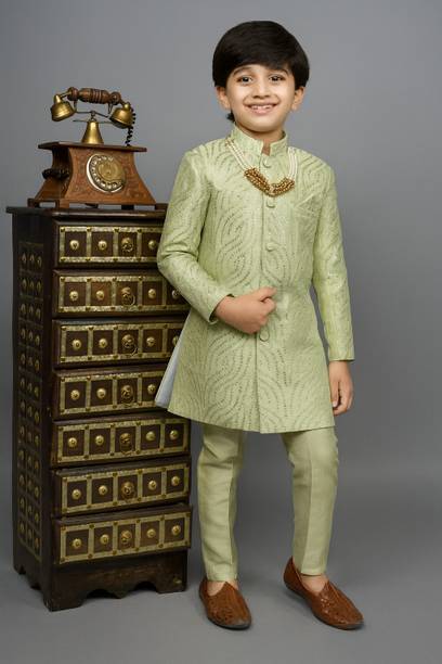 SelfiCollection Boys Festive & Party Kurta and Churidar Set