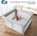 Whether you're in a spacious living room or a more limited area, this playpen’s adaptable design makes it ideal for a variety of environments. If space is tight, simply adjust the panels to create a smaller play area, still giving your child the freedom to move while keeping the playpen within your room's dimensions. This feature is particularly useful for families who might have fluctuating space needs or those who want to easily set up a designated play area when needed.