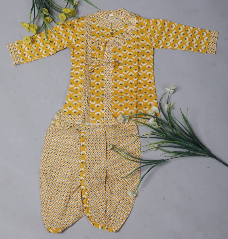 Kids Villa Baby Boys Casual Angarkha and Dhoti Pant (Yellow Pack of 1)