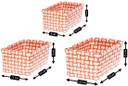 3 piece woven storage boxes are made of durable nylon ribbon, the frame of all woven organizer bins is inserted with steel wire to maintain shape over time. The storage cube box can be used as makeup organizer, bathroom organizer, nursery organizer, office organizer, desk organizer, shelf organizer, kitchen organizer. The package includes 3 different sizes : 1st Basket H: 8cm x L = 15cm x W = 9cm, 2nd Basket: H = 9cm x L = 17cm x W = 11cm, 3rd Basket : H = 11cm x L = 19cm x W = 12.5cm