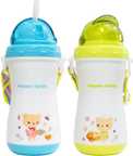 Kidsify Baby Opaque Soft Straw Sipper White Anti Spill Sippy Cup with Adjustable Strap for Baby & Kids Water Bottle/Juice Sipper BPA Free 350ML (Pack of 2)  (Blue,Pink)