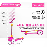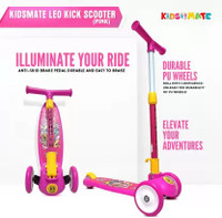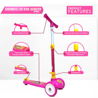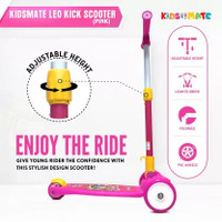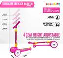 Kidsmate Leo Kick Scooter for Kids, 4 Adjustable Height, Foldable & Attractive Kids Scooter (Pink, Pack of 1)