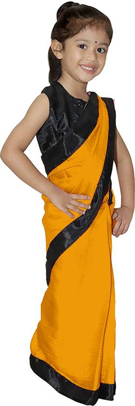 KidsSarees Solid/Plain Bollywood Satin Saree (Mustard)
