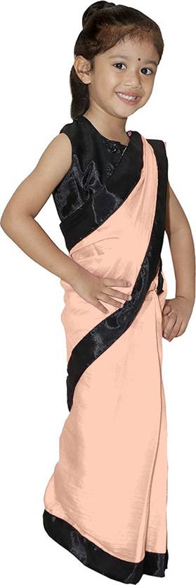 KidsSarees Solid/Plain Bollywood Satin Saree (Cream)