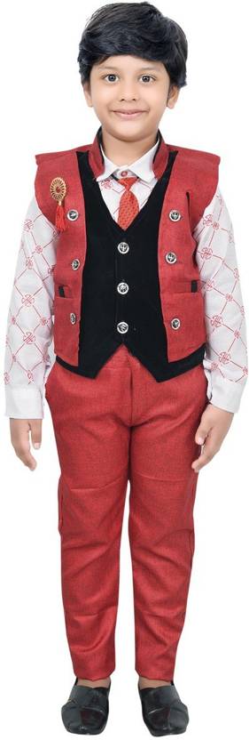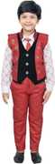 Kidzarea Boys Festive & Party Shirt, Waistcoat and Pant Set (Maroon Pack of 1)