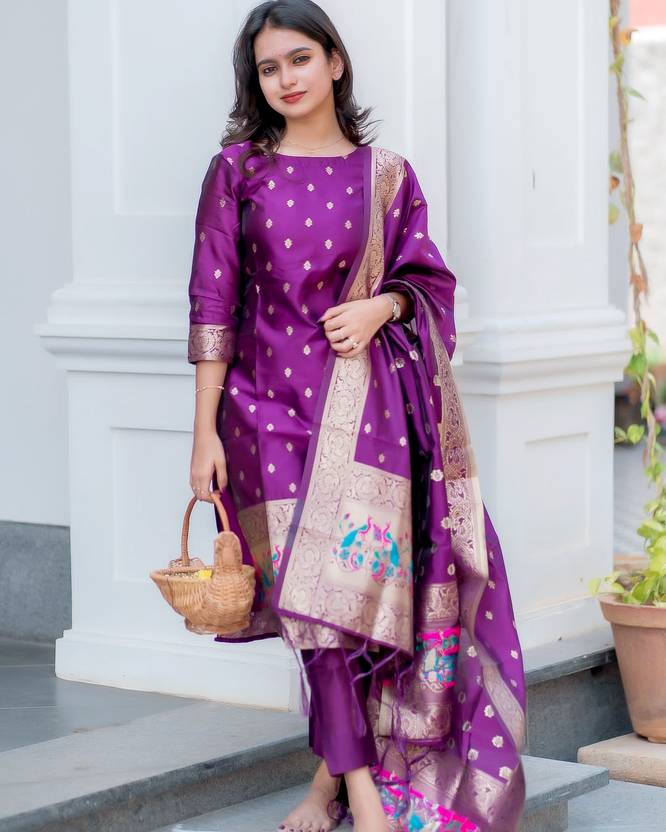 Timeless elegance with this Banarasi Silk Stitched Suit, designed for women who love traditional style with modern comfort. Made from premium Banarasi silk, the suit features rich weaving, intricate motifs, and a smooth finish that makes it perfect for festive occasions, weddings, and parties. Available in sizes S to XXL, it ensures a comfortable and flattering fit for every body type. Pair it with traditional jewelry and footwear to complete your ethnic look.