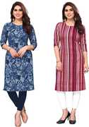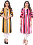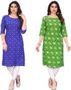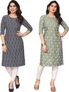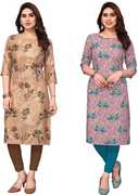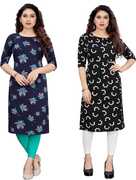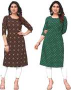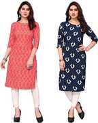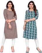 Pack of 2 Women Printed Crepe Straight Kurta (Multicolor)