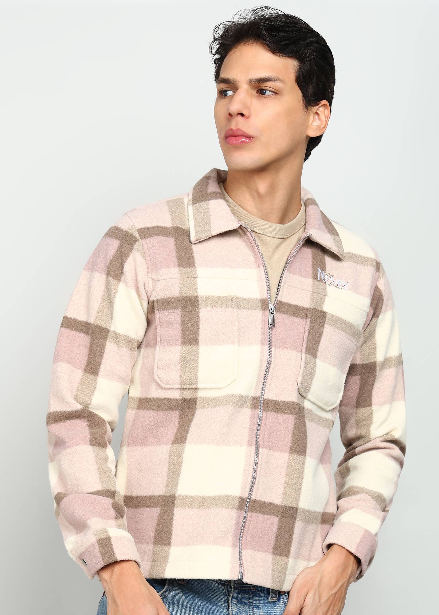 Killer Mens Pink Checkered Spread Collar Zipper Full Sleeve Casual Jacket