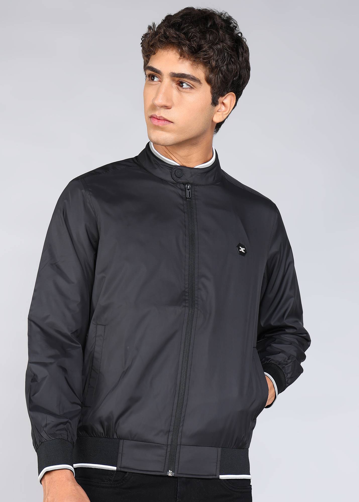 Killer Mens Black Round Neck Solid Full Sleeve Casual Jacket