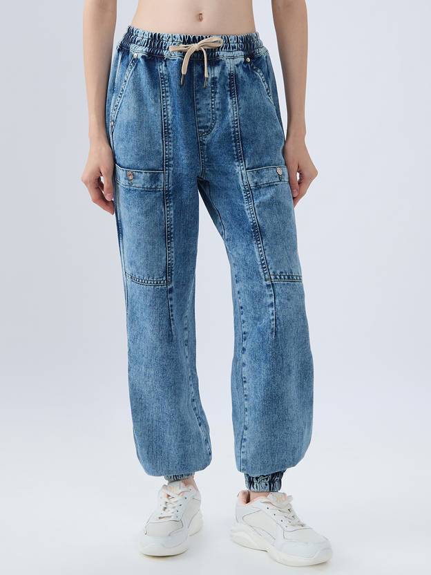 Women Jogger Fit Mid Rise Light Blue Jeans