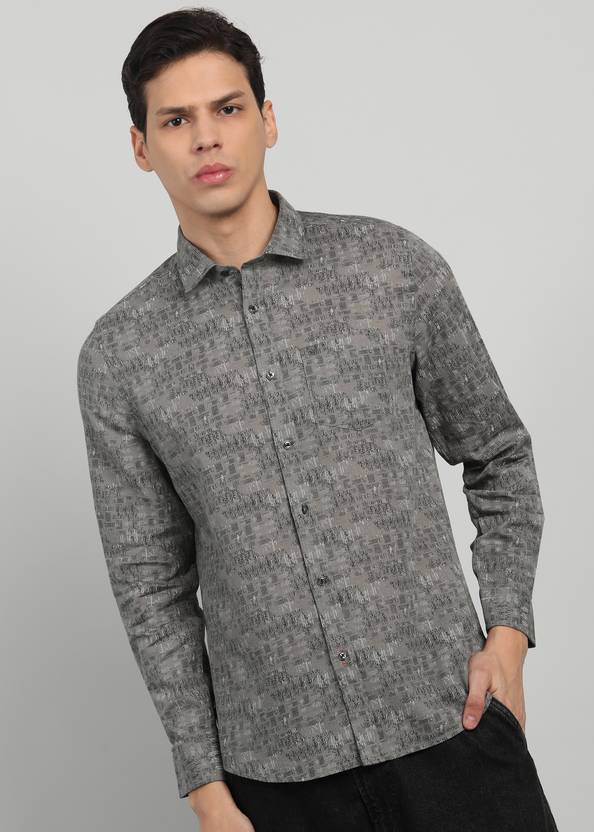 Killer Mens Grey Printed Cut Away Collar Full Sleeve Casual Shirt