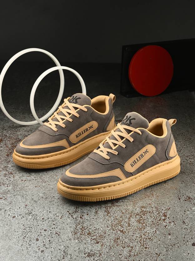 Step up your sneaker game with Killer's latest addition - the Men's Casual Sneakers in an eye-catching grey and beige colorway. Designed for both comfort and style, these sneakers feature a premium suede upper, a cushioned insole, and a durable Airmix outsole, ensuring you stay on-trend and comfortable all day long. Whether you're heading to a casual hangout, a walk around the city, or a night out, these sneakers offer the perfect blend of fashion and functionality. With the bold "KILLER" branding, make a statement with every step you take. Premium Upper: Crafted from high-quality Synthetic upper provides a soft and luxurious feel while offering excellent breathability. The material molds to your feet over time, enhancing comfort with every wear. Cushioned Insole: Designed with advanced cushioning technology, the insole provides superior arch support, reduces foot fatigue, and ensures maximum comfort even after long hours of walking or standing. Durable Airmix Outsole: Built for everyday adventures, the tough Airmix outsole delivers exceptional grip and traction on various surfaces while maintaining flexibility and shock absorption. Stylish Design: Featuring a modern grey and beige color combination, accented by bold "KILLER" branding, these sneakers exude confidence and urban fashion appeal, making them a versatile addition to any wardrobe.