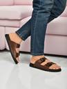Killer men’s synthetic leather slip-on sandals with lightweight AirMix sole, solid design, comfortable cushioned insole, suitable for casual and ethnic wear, easy to clean and durable.
