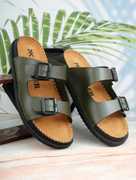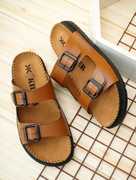 Killer men’s synthetic leather slip-on sandals with lightweight AirMix sole, solid design, comfortable cushioned insole, suitable for casual and ethnic wear, easy to clean and durable.