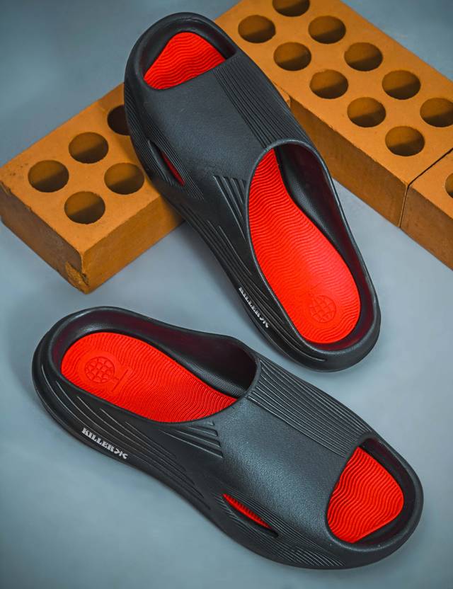 KILLER Men Slides (Black, Red , 6)