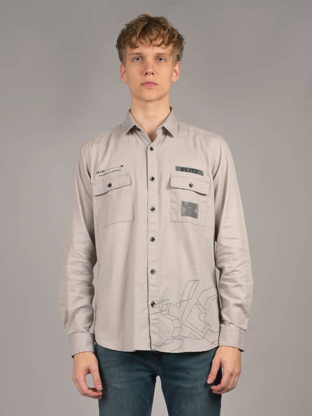 Killer Nxt Mens Grey Straight Fit Collar 2 2 Pocket Solid Full Sleeve Shirts