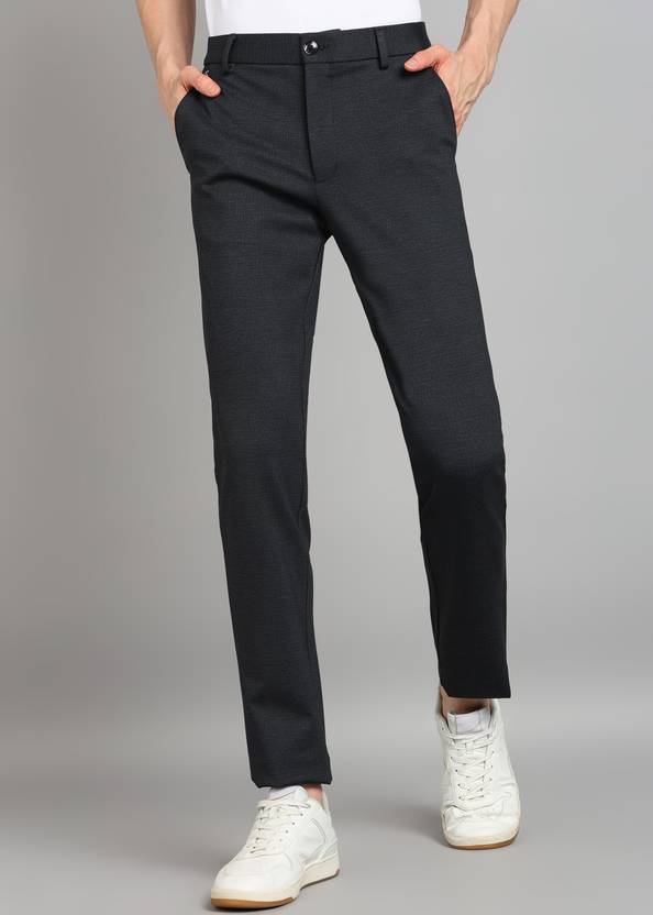 Men Slim Fit Black Lycra Blend Trousers