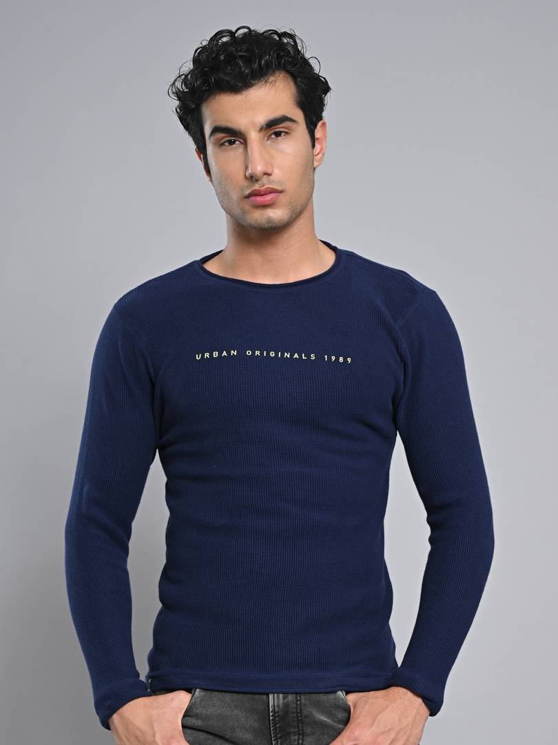 KILLER Solid Crew Neck Casual Men Blue Sweater