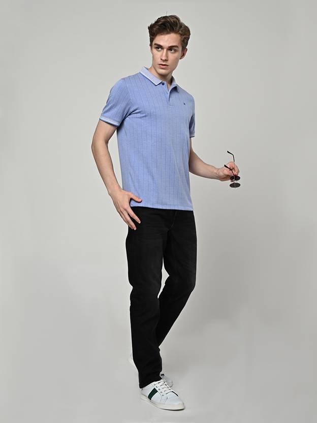 KILLER Solid Men Polo Neck Blue T-Shirt