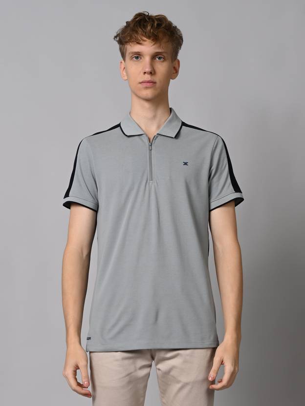 KILLER Solid Men Polo Neck Grey T-Shirt