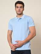 KILLER Solid Men Polo Neck Light Blue T-Shirt