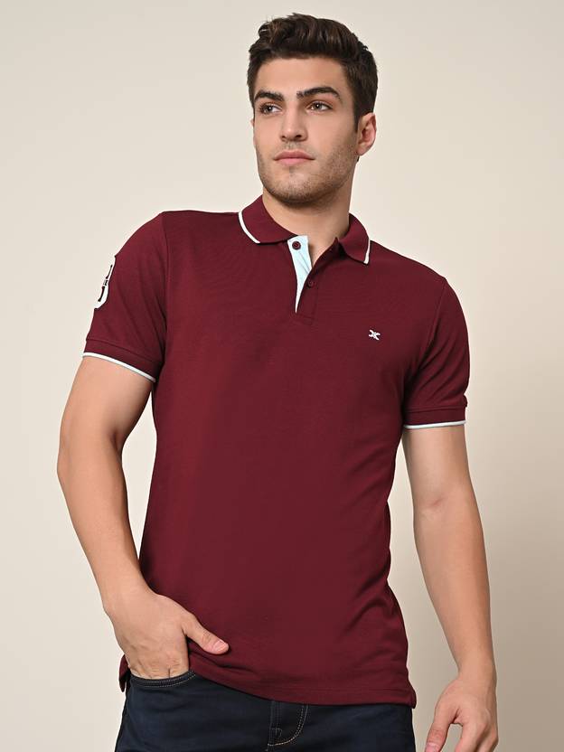 KILLER Solid Men Polo Neck Maroon T-Shirt