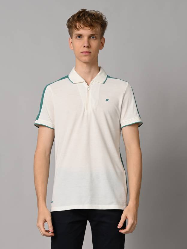 Killer Mens Off White Solid Regular Half Sleeve Polo Neck T-Shirts