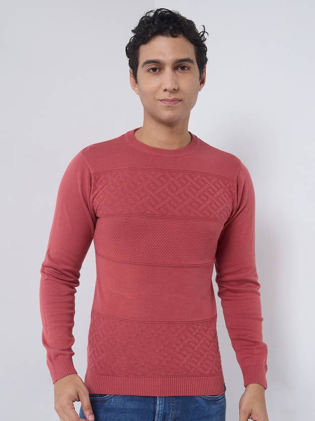 KILLER Solid Round Neck Casual Men Pink Sweater