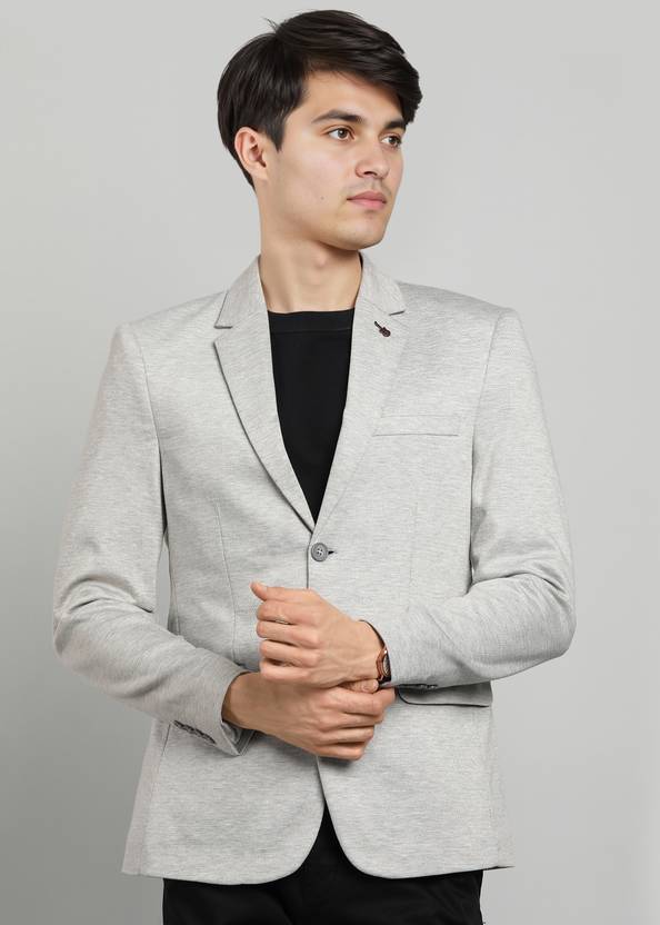 KILLER Solid Single Breasted Casual Men Blazer (Grey)
