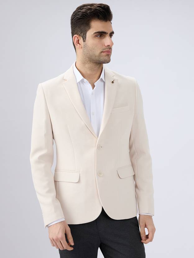 KILLER Solid Single Breasted Casual Men Blazer (Beige)