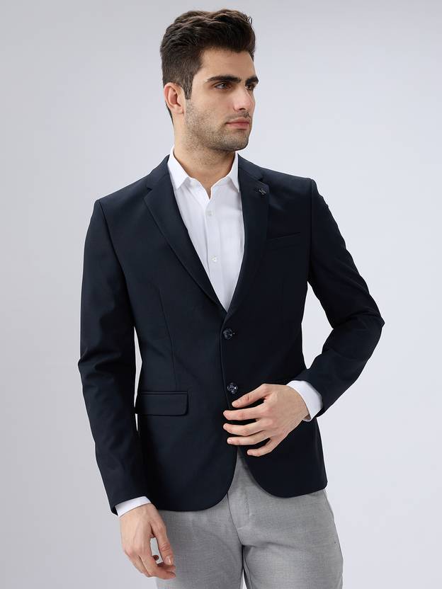 KILLER Solid Single Breasted Casual Men Blazer (Dark Blue)