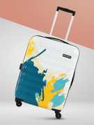 "Colorfull Life with Colorfull Suitcase". 100% Original Branded Product, This Polycarbonet Printed suitcase with ABS base having most stylish design. This feature loaded bag includes a retractable telescopic handle, scratch resistant polypropylene shell, 360 degree spinning wheels and foot pad. This luggage provides heavy weight protection riding on spinner wheels, morever allows for smooth moment over any surface. It has color coordinated interior trims and partition with pouch for your segregated requirements. Special designed by Expert designer.