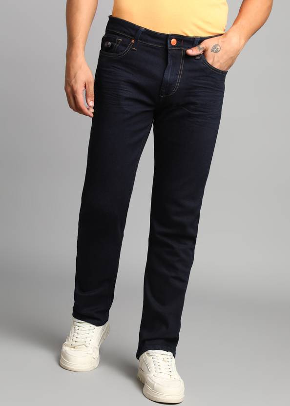 Men Straight Fit Mid Rise Dark Blue Jeans