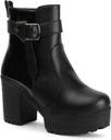 Women's Round Toe Ankle Boots Buckle Zipper Chunky Block Heel Boots for Women