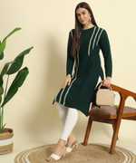 This Kurti is perfect for Formals / Casuals / Festive Occassions - Home Makers/ Professional Women / Teen Girls. This is made up of fine quality Rainbow yarn, which gives you a very elegant, warm n cozzy feel when you wear. Pair them up with smart denims or leggings?etc