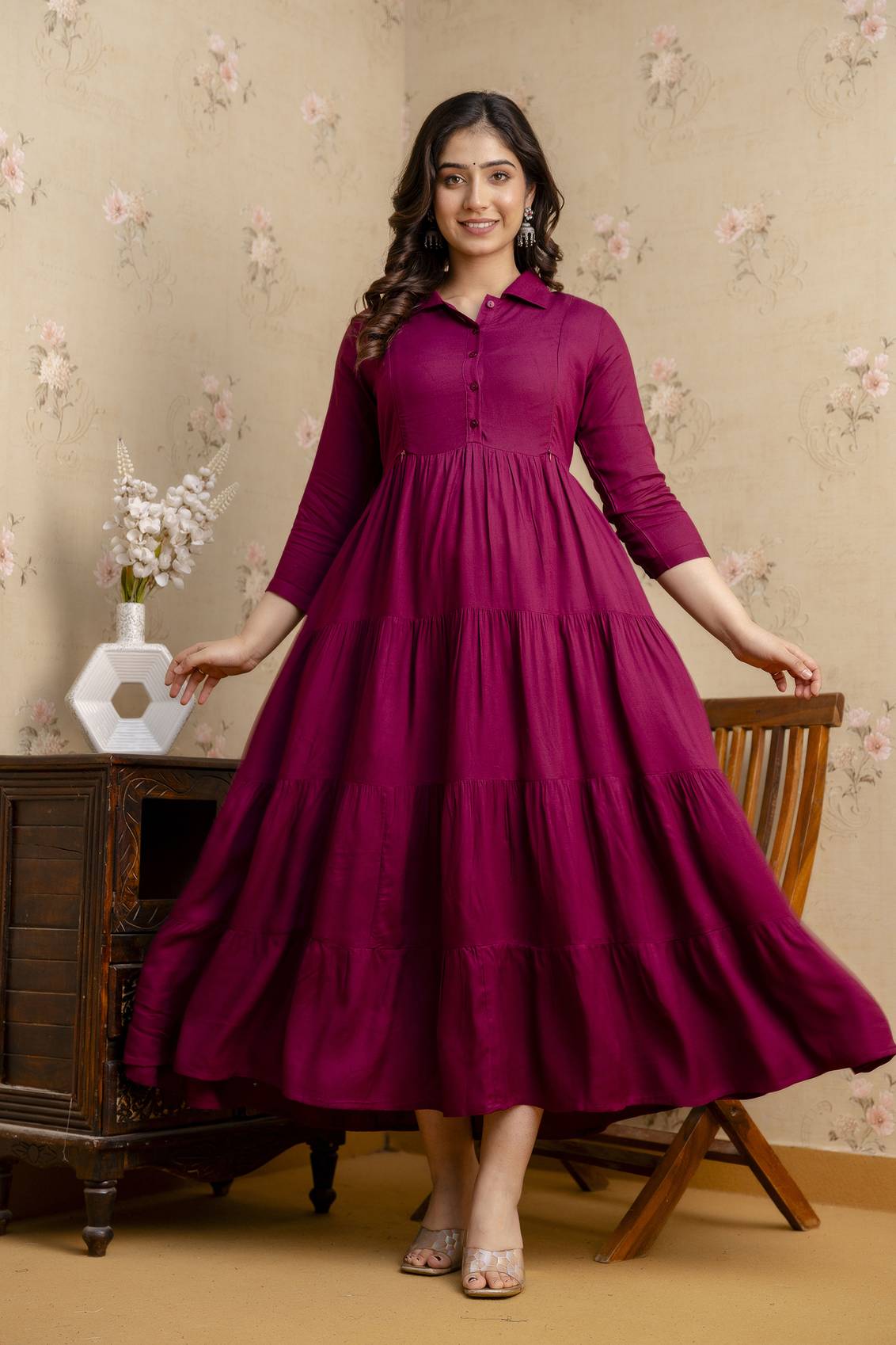 KIMATERNITY Women Solid Flared Kurta (Purple)