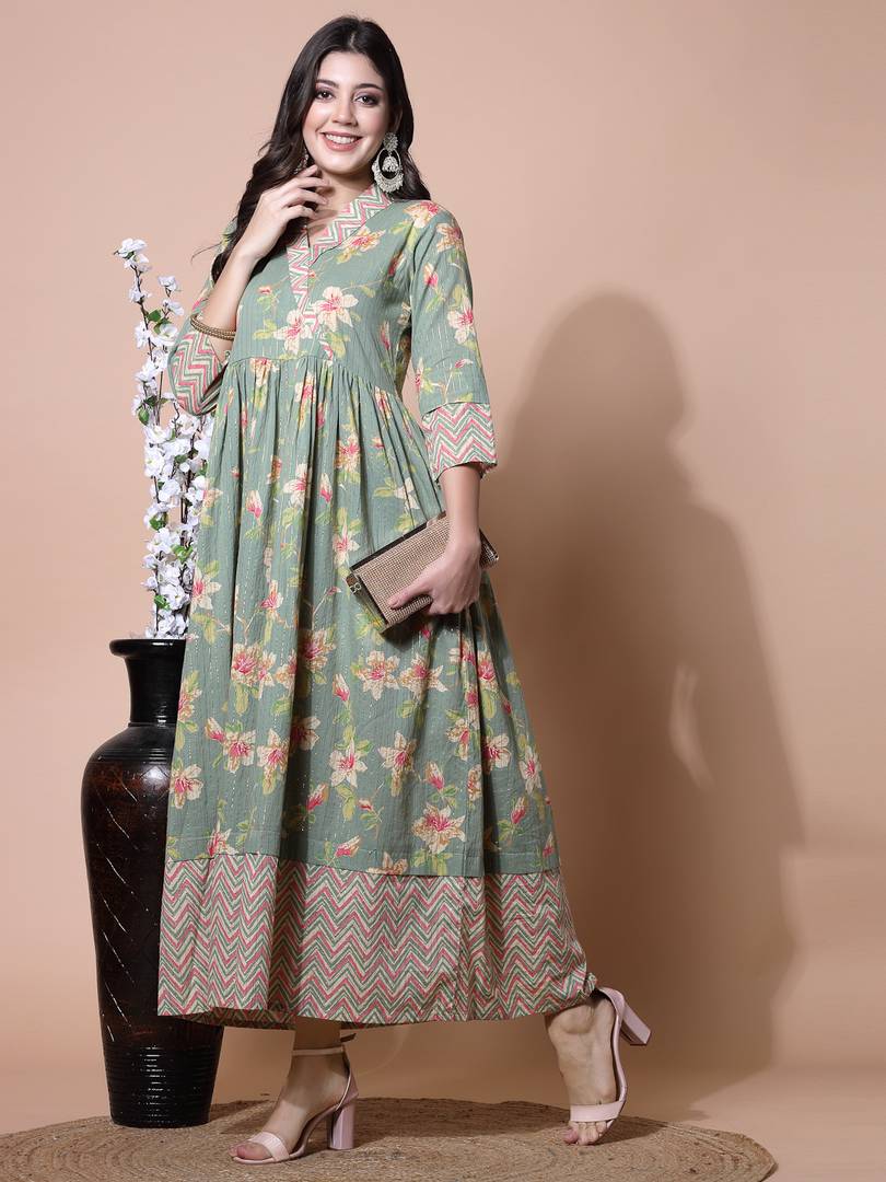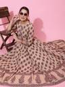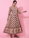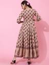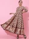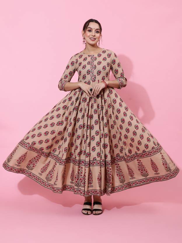 KIMAYRA Women Printed Flared Kurta (Beige)
