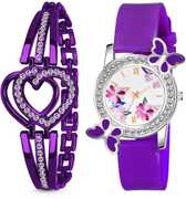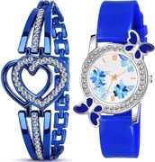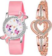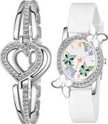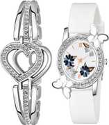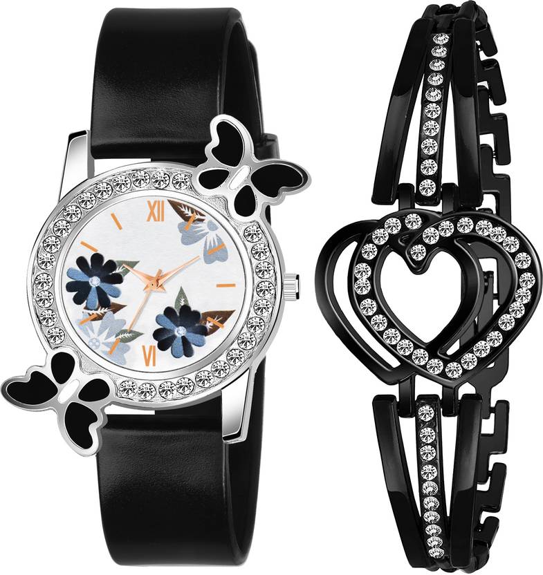Analog Watch - For Girls 328 Black Color Dual Flower Dial Black PU Strap Heart Braeclet Combo