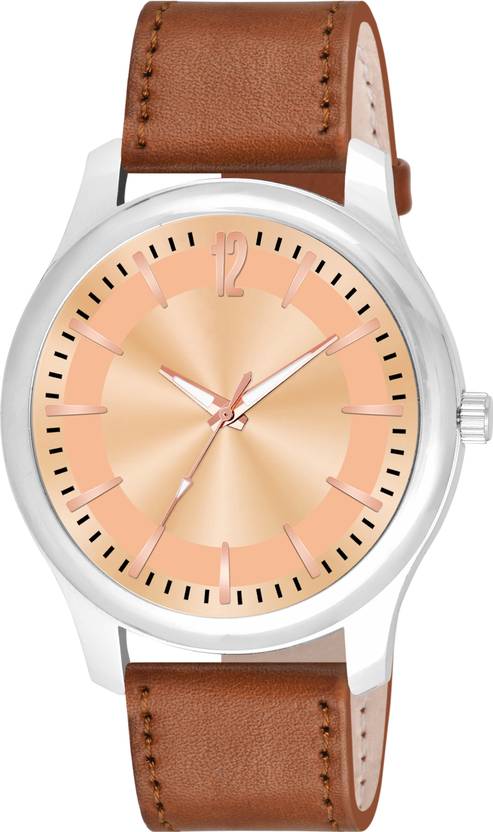 B9084 Analog Watch - For Men Rose Gold 6 To 12 Digital Dial Beige Leather Strap Watch For Men