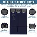 Washing machine covers Keep your washing machine clean when not in use with this convenient cover. made with Polyester makes it longlasting. Zipper on top which make it easily remove and put on. Foldable to small size when not in use to store on a shelf or in a cabinet.