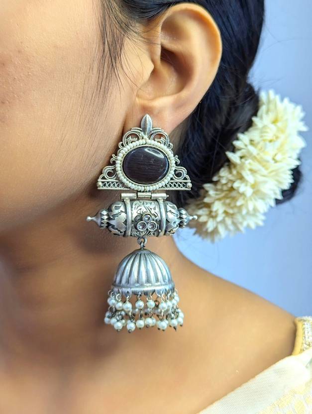Regal Antique Silver-Plated Jhumka Earrings with Pearls