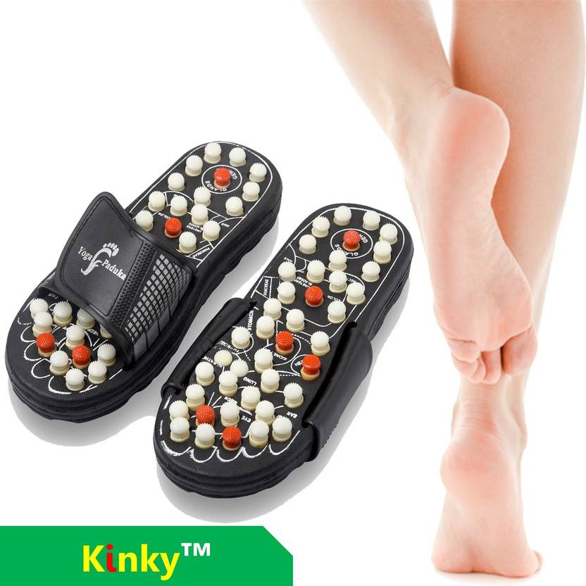 Acupressure Slippers are specifically designed to stimulate the soles of the feet which have hundreds of nerve endings. This special foot massaging action can improve circulation and alleviate fatigue. Simply walking in your acupressure sandals promotes healthy blood flow, increases oxygen, induces relaxation and re-energizes feet and legs. The acupressure massage therapy stimulates and activates the body's own energies to help fight illness and restore harmony. Acupressure has a lot of advantages for physical, spiritual, and mental health. It helps to relieve pain, reduce strain, increase blood circulation, and provides a relaxing effect to the body. In a nutshell, acupressure involves the simple act of applying pressure to various points on our bodies and it does wonders to alleviate the aches, pains, tension, and built-up stresses on our bodies. Acupressure works by stimulating the thousands of nerves in our hands and feet, thereby increasing blood flow. Acupressure spring action massage sandal is designed according to the foot reflexology. the dual benefit of spring acupressure &, magnet therapy reduces pain in lower and upper back, neck, shoulders, hips, muscles &, joints. it improves blood circulation and reduces muscular tension. It strengthens the immune system, preventing illness. Helpful for the excretion of toxic substances, improving your health. Usage: wear the slippers for 10 minutes in the morning as you prepare for work or other activities. As they stimulate nerve endings and increase blood flow to the body, they also help eliminate retained water and toxins.