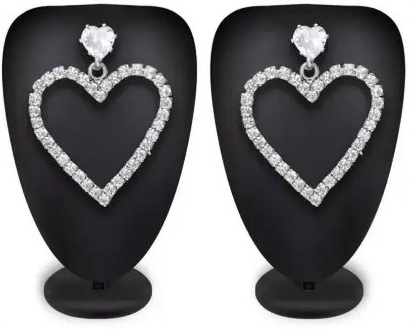 Add a romantic to your look with these stunning heart-shaped earrings by Shree Dzata. Designed with shimmering crystals and a silver-plated finish, these earrings are lightweight, elegant, and perfect for both everyday wear and special occasions.