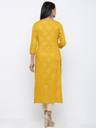 Women's Golden Foral Printed Rayon Slub fabric Straight Kurta Mustard Color
