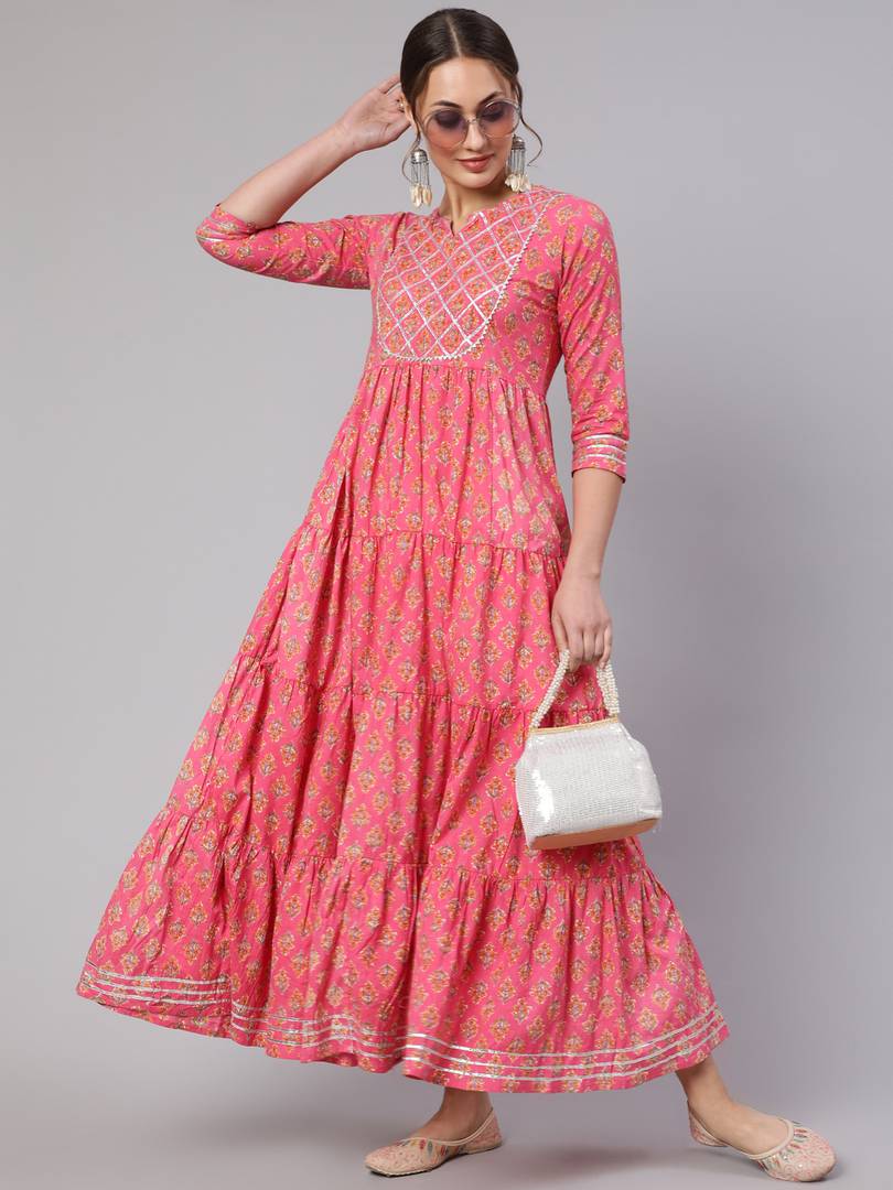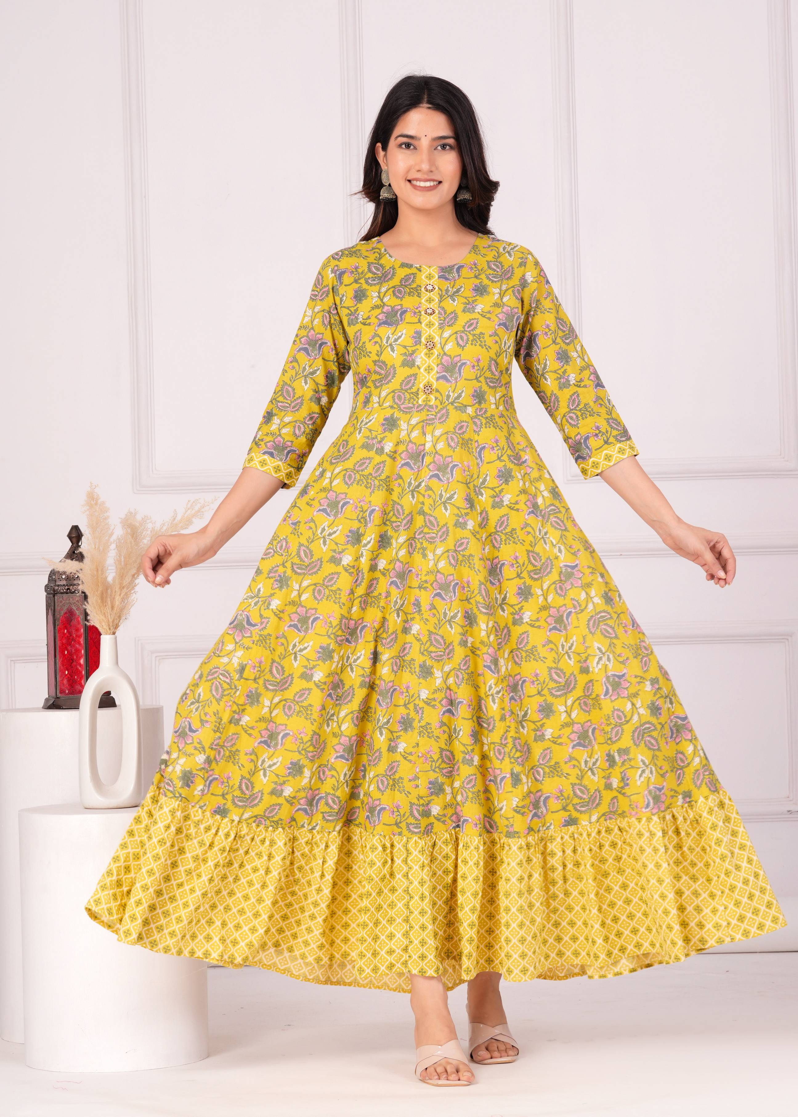 Presenting all new designer A printed gown fabric pure cotton for women . floral print gown for women and girls . all size are available s,m,l,xl,xxl . best quality fabric and print , design Develope by professional workers . stiched and finished well .
