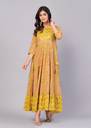 Indulge in the epitome of elegance with our exquisite full-length gown for women. Crafted from luxurious rayon fabric, renowned for its softness and breathability, this gown promises unparalleled comfort. Featuring graceful 3/4 sleeves, it's adorned with intricate Sanganeri prints, adding a touch of tradition and charm. The captivating crossing print enhances its sophistication, making it a standout piece for any occasion. Whether it's a casual day out or a special event, step into effortless style and comfort with our stunning Sanganeri printed gown.