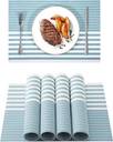 Elegant & Modern Design: Add a stylish touch to your dining table with KitchEase's woven PVC vinyl placemats featuring a sleek sky blue & white pattern. Perfect for both home and restaurant settings., Heat Resistant & Durable: Designed to withstand daily use, these placemats offer heat resistance up to 176°F (80°C), protecting your table from hot plates and spills., Easy to Clean & Stain Resistant: These placemats are fully washable and stain resistant, allowing for easy cleanup. Simply wipe them with a damp cloth or rinse under water., Waterproof & Long-Lasting: Made from high-quality PVC vinyl, these placemats are waterproof and built to last. They resist daily wear and tear while maintaining their appearance., Versatile & Gift-Ready: Perfect for casual family meals or elegant dinner parties, these placemats are also great for gifting on housewarmings, weddings, or special occasions.
