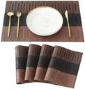 • Elegant & Modern Design: Add a stylish touch to your dining table with KitchEase's woven PVC vinyl placemats featuring a sleek brown pattern. Perfect for both home and restaurant settings., Heat Resistant & Durable: Designed to withstand daily use, these placemats offer heat resistance up to 176°F (80°C), protecting your table from hot plates and spills., Easy to Clean & Stain Resistant: These placemats are fully washable and stain resistant, allowing for easy cleanup. Simply wipe them with a damp cloth or rinse under water., Waterproof & Long-Lasting: Made from high-quality PVC vinyl, these placemats are waterproof and built to last. They resist daily wear and tear while maintaining their appearance., Versatile & Gift-Ready: Perfect for casual family meals or elegant dinner parties, these placemats are also great for gifting on housewarmings, weddings, or special occasions.